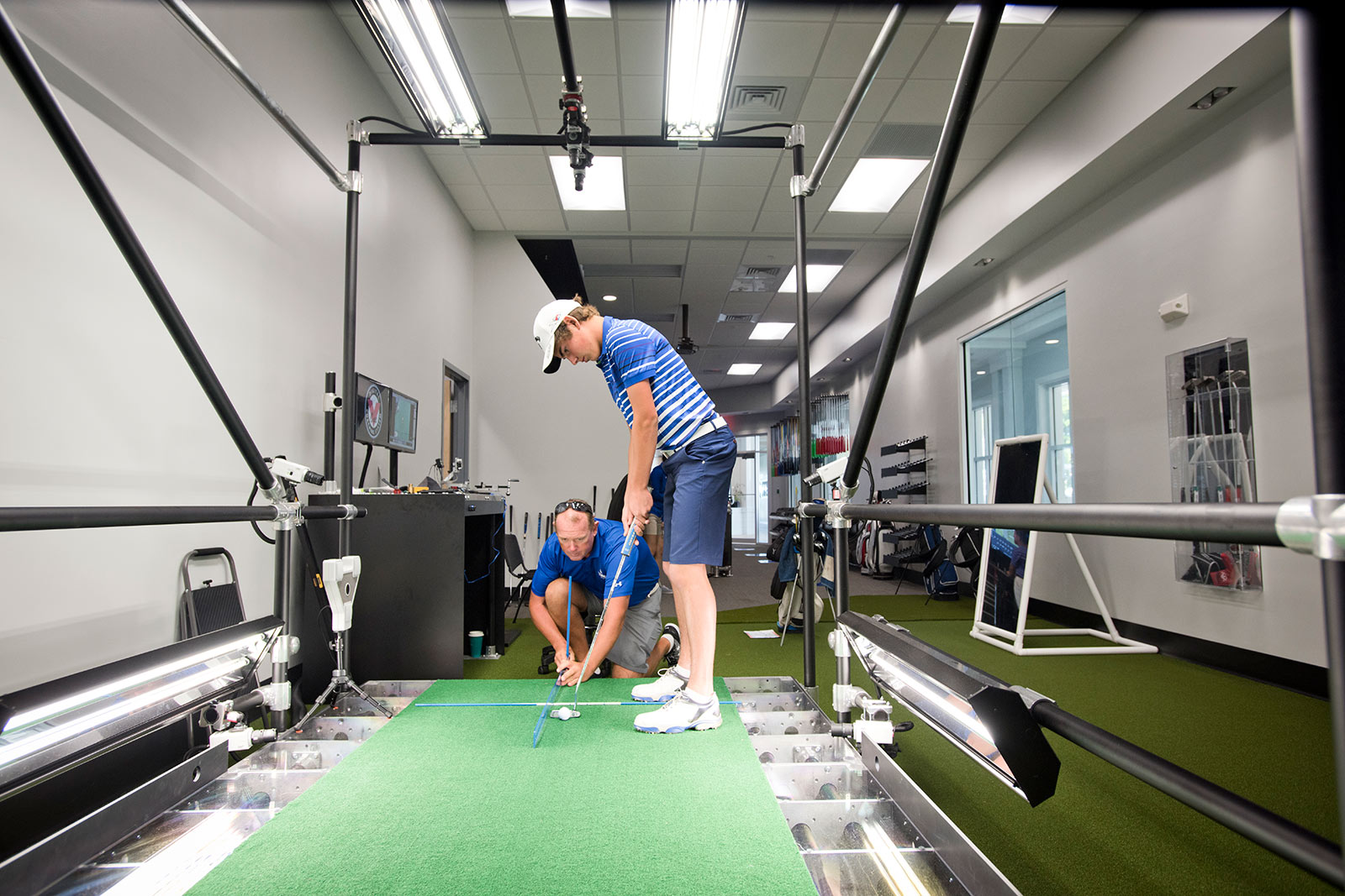 IMG Academy’s Golf Center consists of an 18-hole golf course, double-sided driving range, putting greens, multiple target greens, and our Tour Studio powered by Cool Clubs. The Tour Studio powered by Cool Clubs is home to technology such as SAM PuttLab, BodiTrak, K-Vest, and TrackMan, as well as our pro shop, fitness center, and locker rooms.