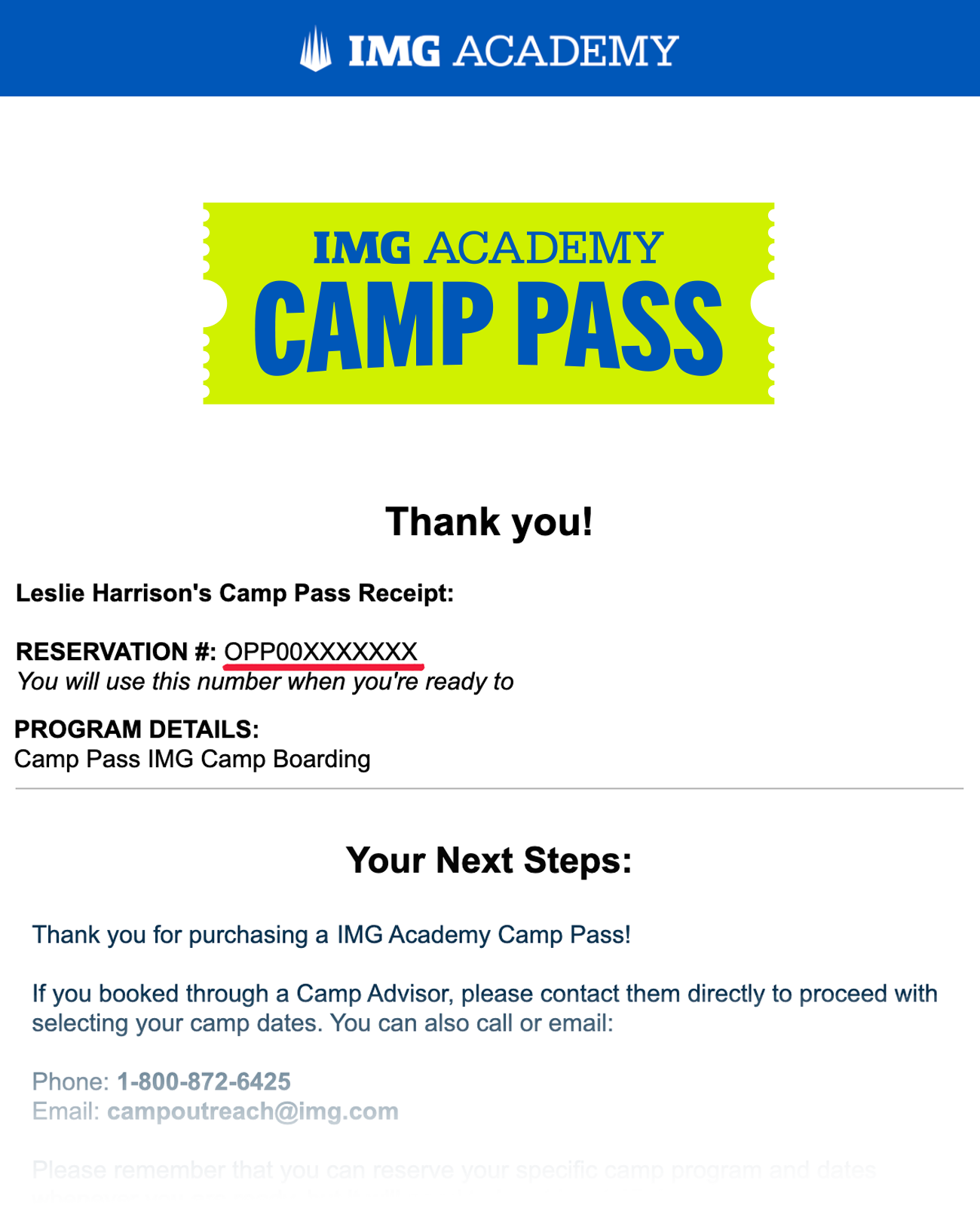 Look for the email confirmation you received while purchasing a camp pass.